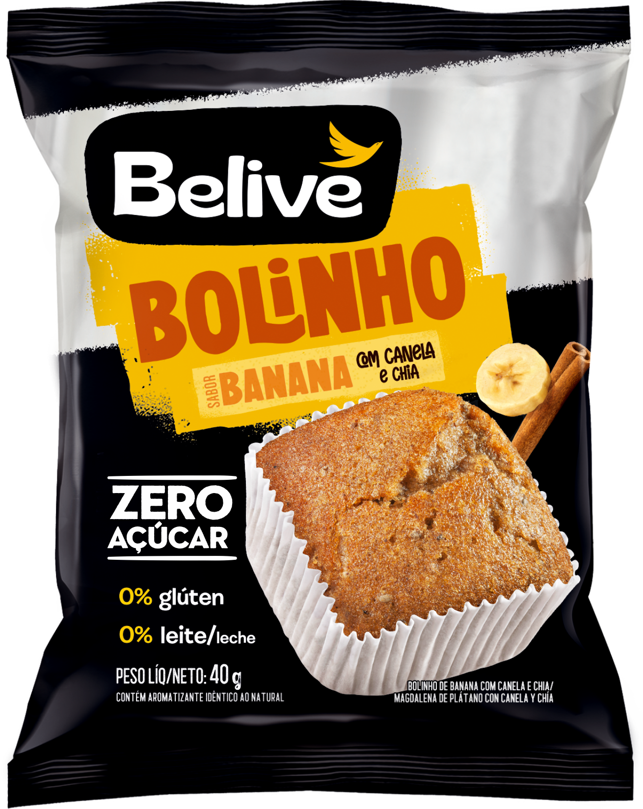 Mix sem glúten (farinha de arroz, amido modificado, farinha de banana verde, fécula de mandioca), óleo vegetal (soja e palma), ovo em pó, fibra solúvel polidextrose, chia, canela em pó, edulcorantes maltitol e glicosídeos de esteviol, umectantes sorbitol e glicerol, emulsificantes mono e diglicerídeos e ésteres de poliglicerol de ácidos graxos e goma xantana, fermento químico pirofosfato dissódico e bicarbonato de sódio, conservantes propionato de cálcio e sorbato de potássio, acidulante ácido cítrico e aromas. NÃO