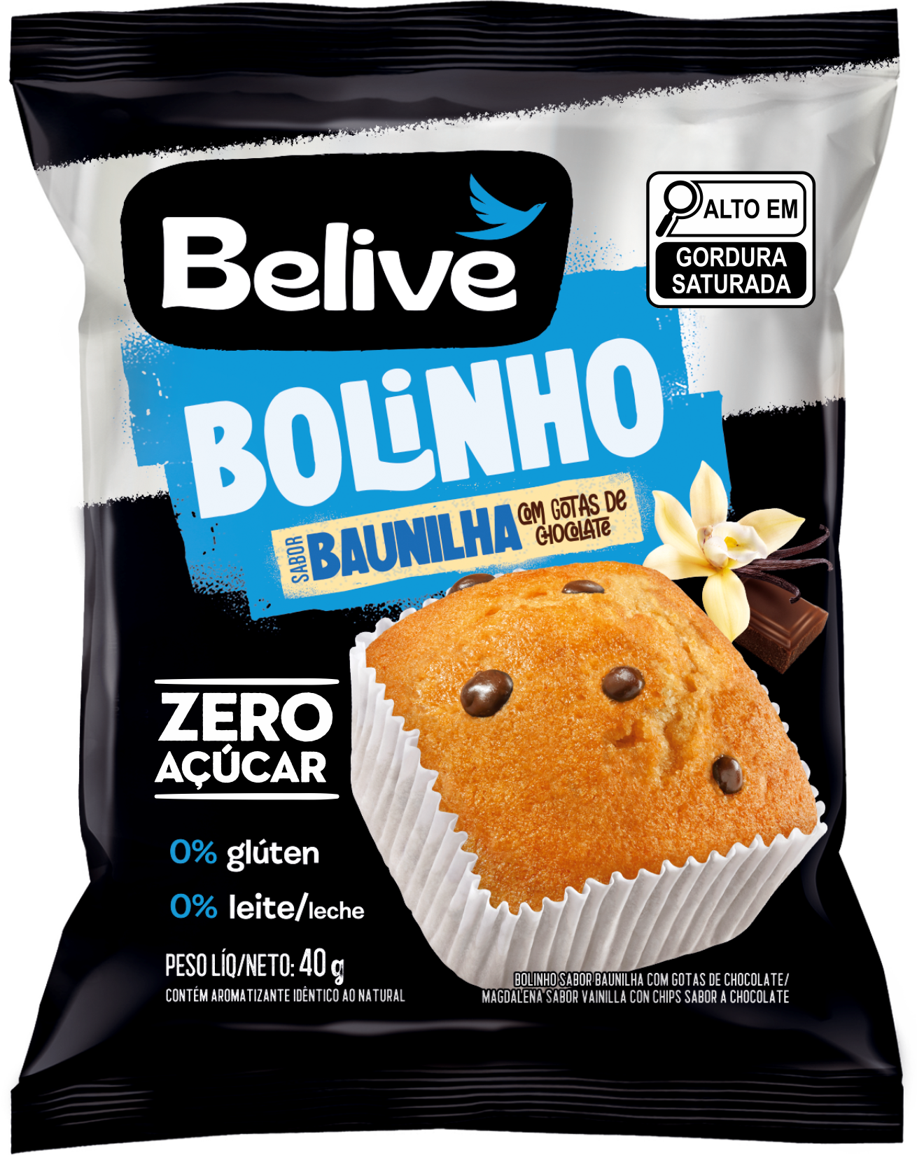 Mix sem glúten (farinha de arroz, fécula de batata, amido modificado, fécula de mandioca, amido de milho), óleo vegetal (soja e palma), gotas de chocolate amargo, ovo em pó, fibra solúvel polidextrose, leite de coco em pó, edulcorantes maltitol e glicosídeos de esteviol, umectantes sorbitol e glicerol, emulsificantes mono e diglicerídeos e ésteres de poliglicerol de ácidos graxos e goma xantana, fermento químico pirofosfato dissódico e bicarbonato de sódio, conservantes propionato de cálcio e sorbato de potássio, acidulante ácido cítrico e aromas. NÃO CONTÉM GLÚTEN. ALÉRGICOS: CONTÉM DERIVADO DE SOJA E OVO.